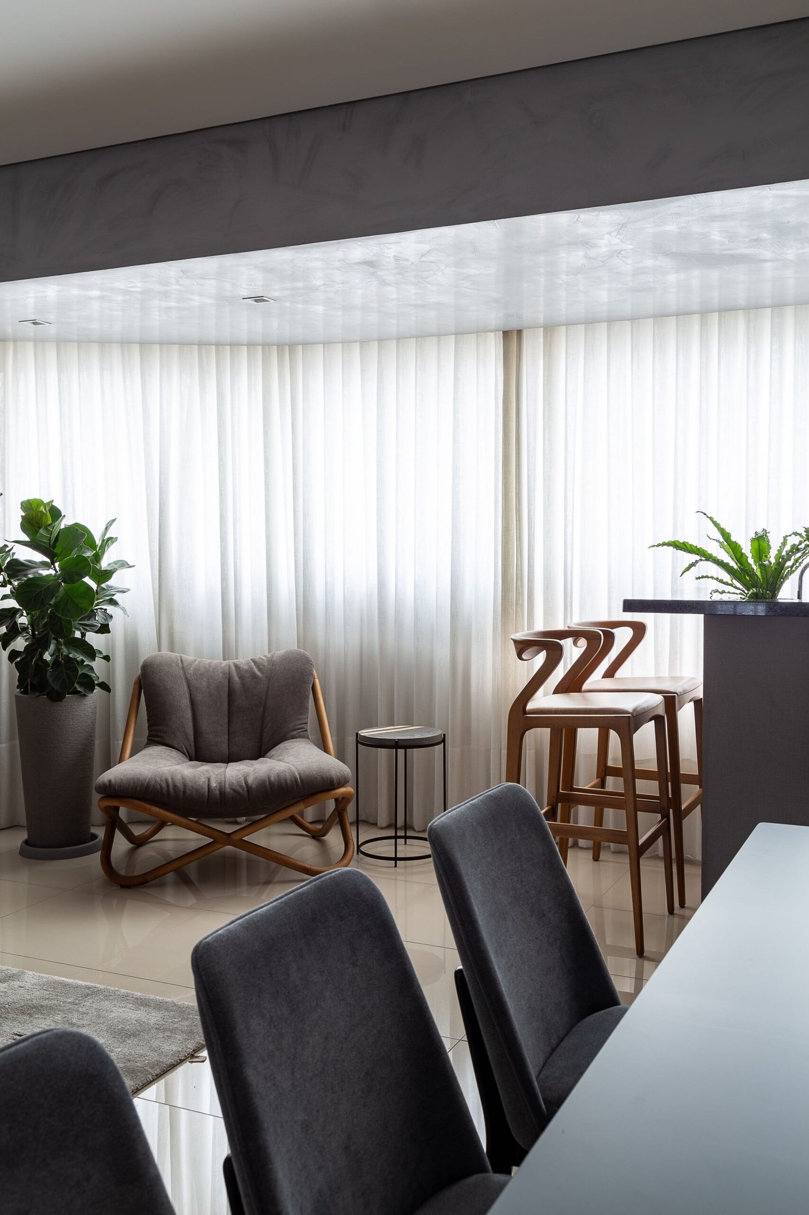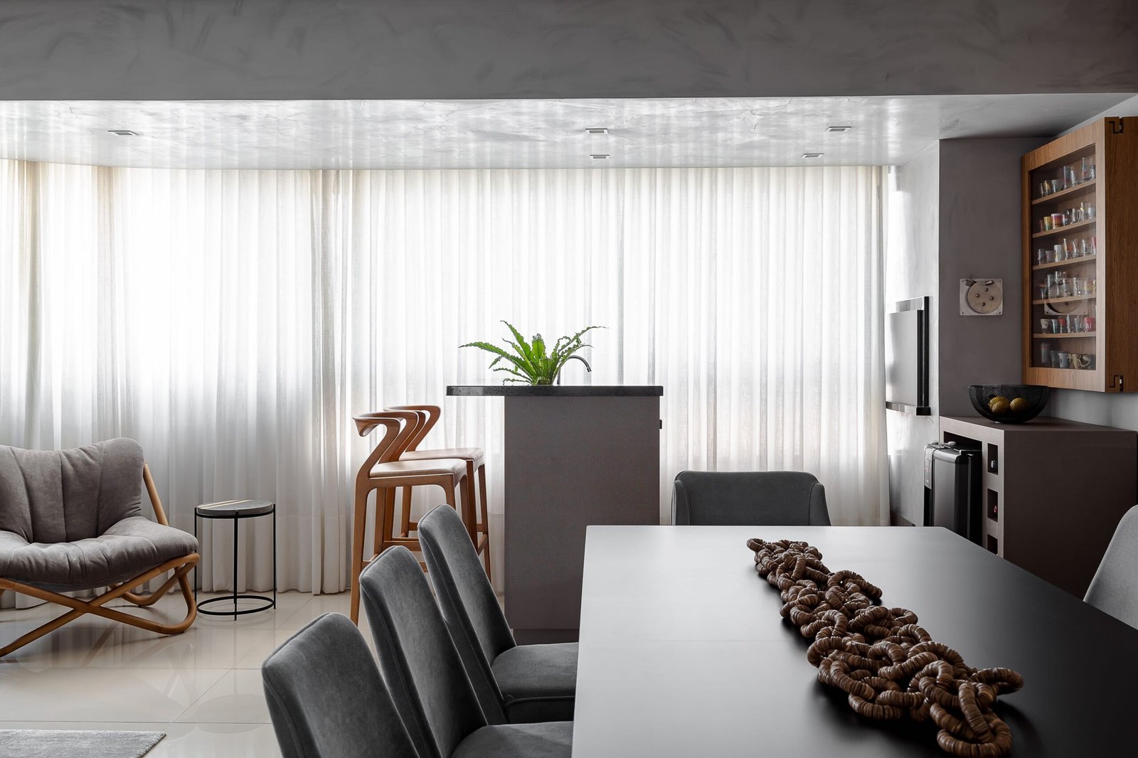 Projeto AR Este projeto foi uma reforma de um apartamento compartimentando em um edifício antigo de Curitiba, e que transformamos em um apartamento para um jovem casal, integrando os ambientes e modernizando os espaços. Fotos do fotógrafo Fernando Fischer