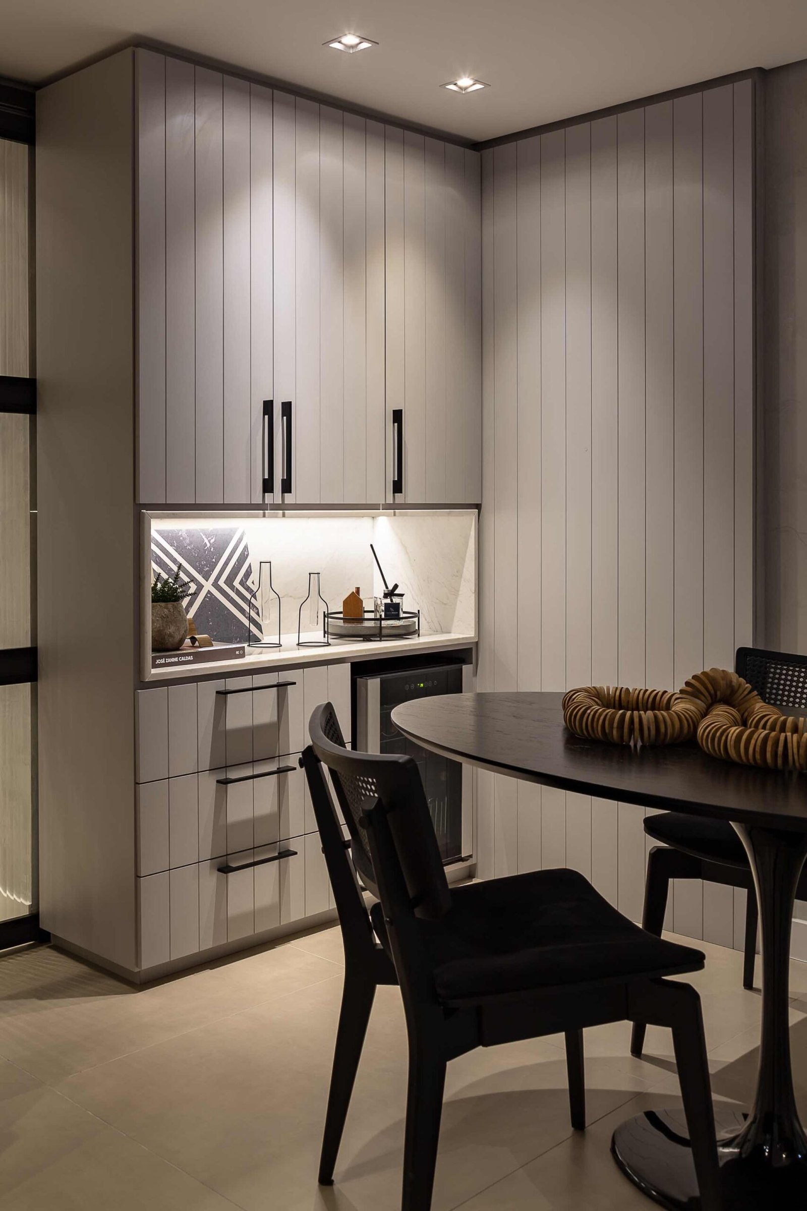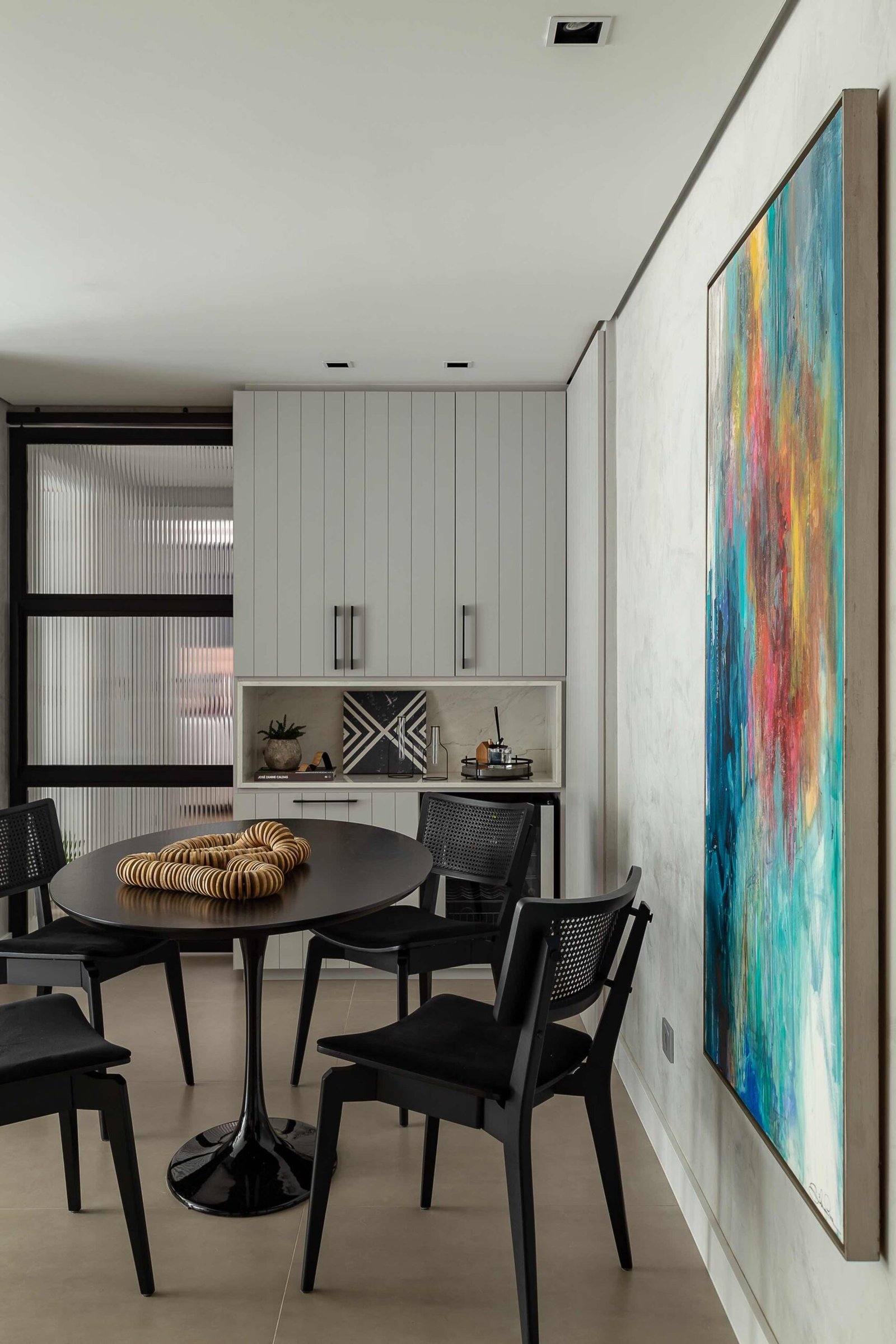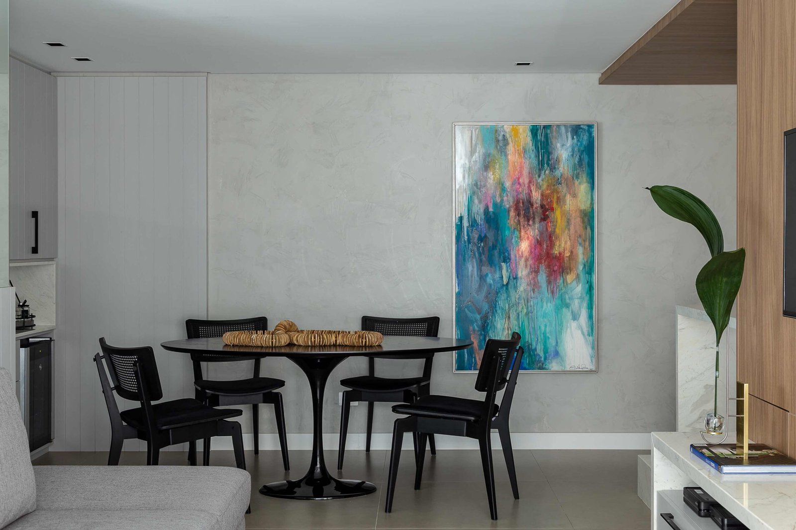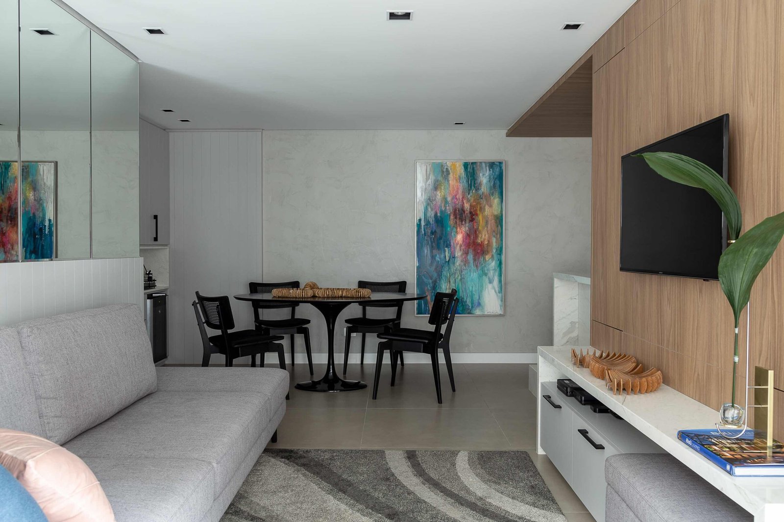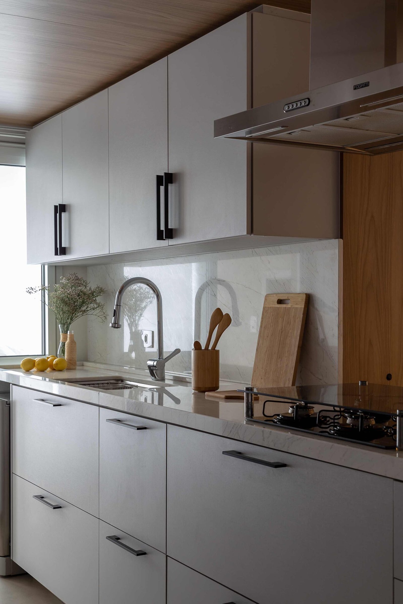 Este projeto foi uma reforma completa para um jovem casal estava voltando a moral no Brasil depois de uma temporada na Austrália. Eles pediram que transformássemos a cozinha e sala em um ambiente integrado (o que não era originalmente), e que os ambientes traduzissem a sua personalidade, com toques pontuais de cor.