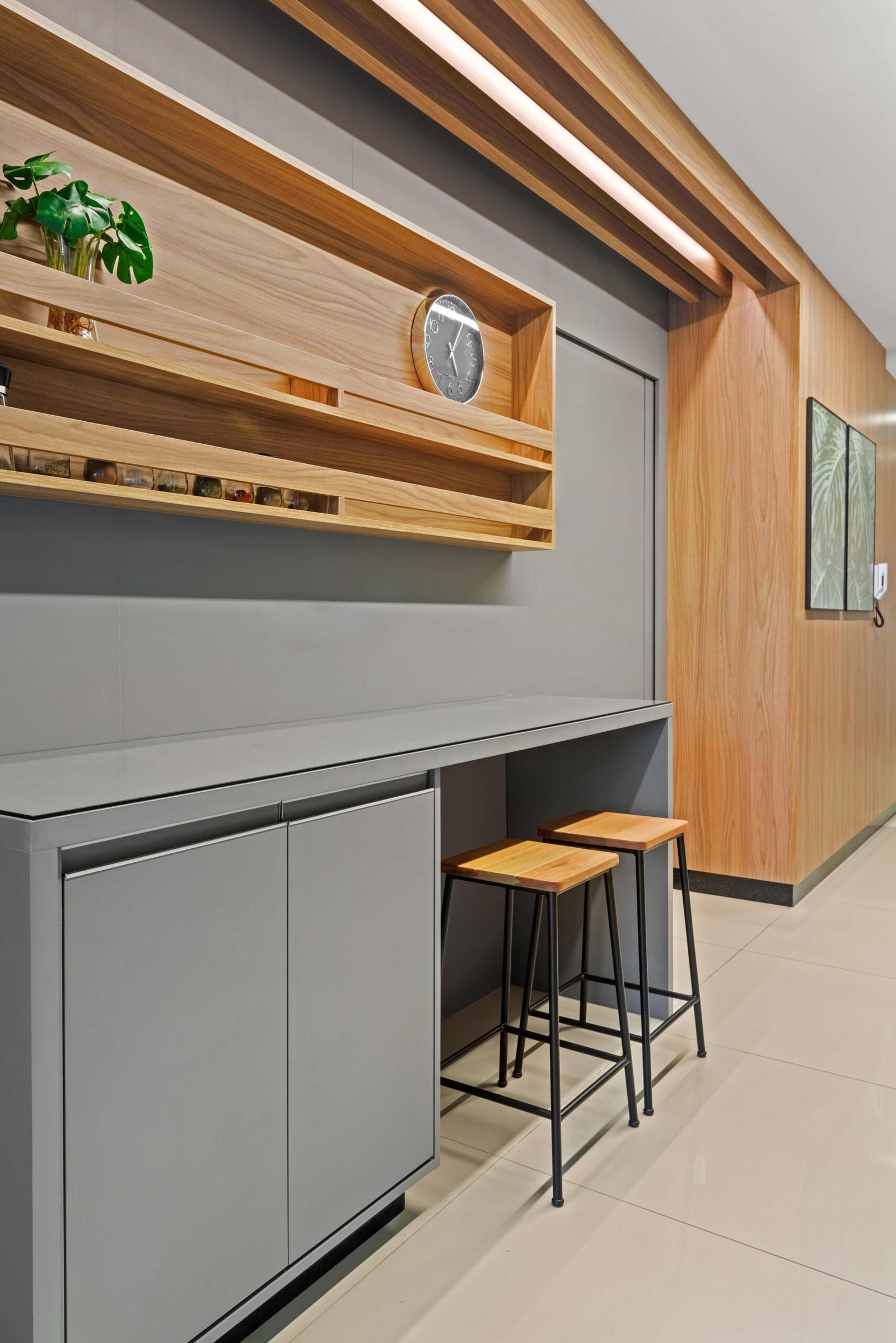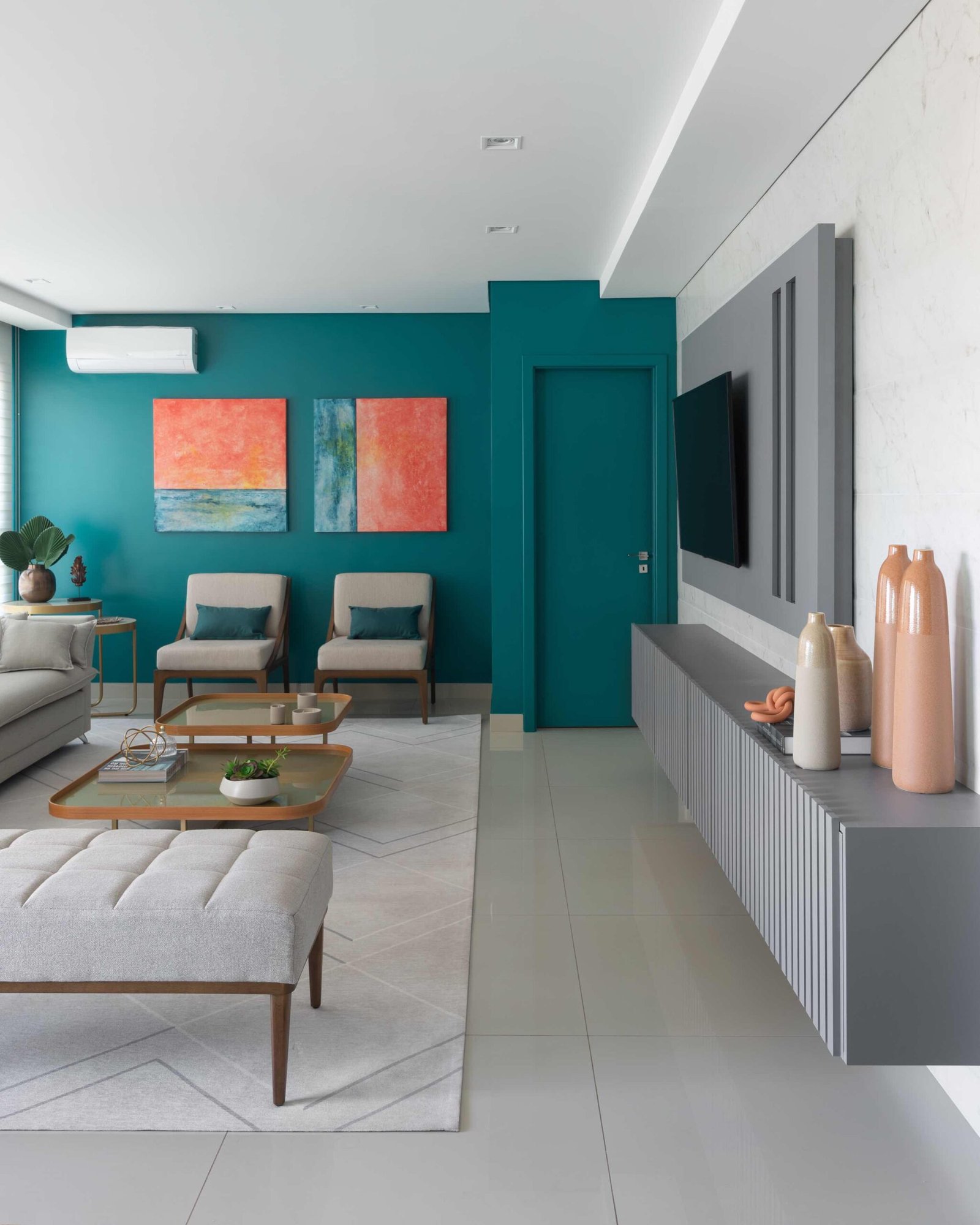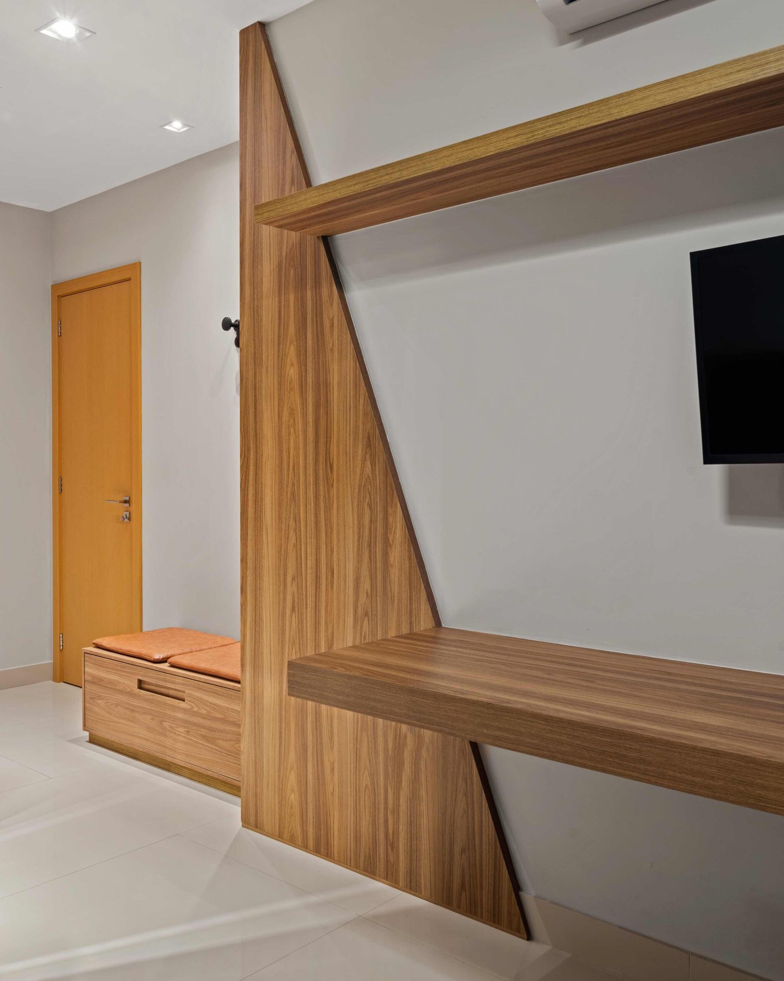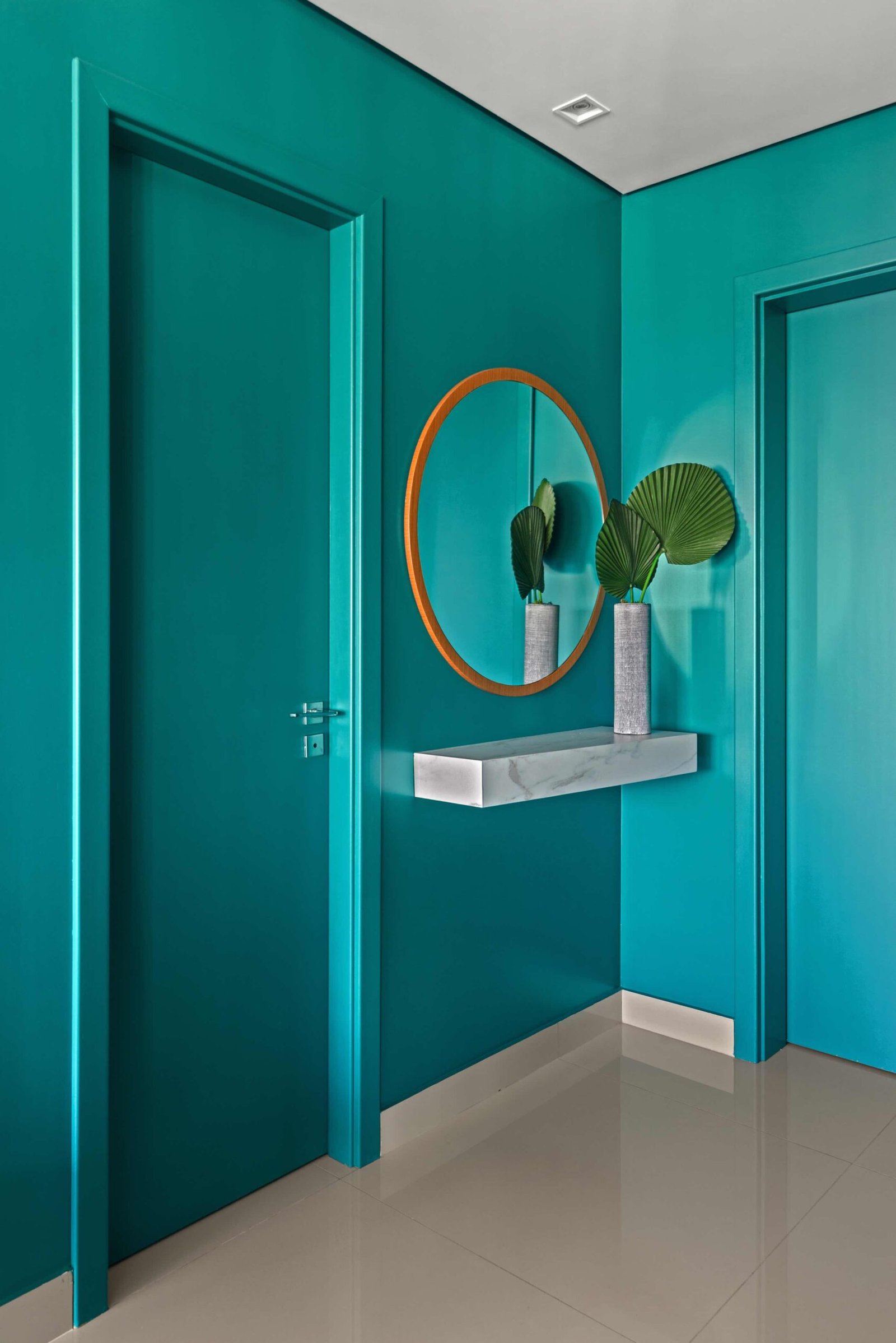 Este projeto foi desenvolvido para um apartamento em Cuiabá-MT. Sendo uma das cidades mais quentes do Brasil, a premissa do projeto foi que ele transmitisse frescor e personalidade. Usando da cor no lugar de painéis de madeira (que passam a sensação de mais calor) criamos a atmosfera desejada pelos clientes.