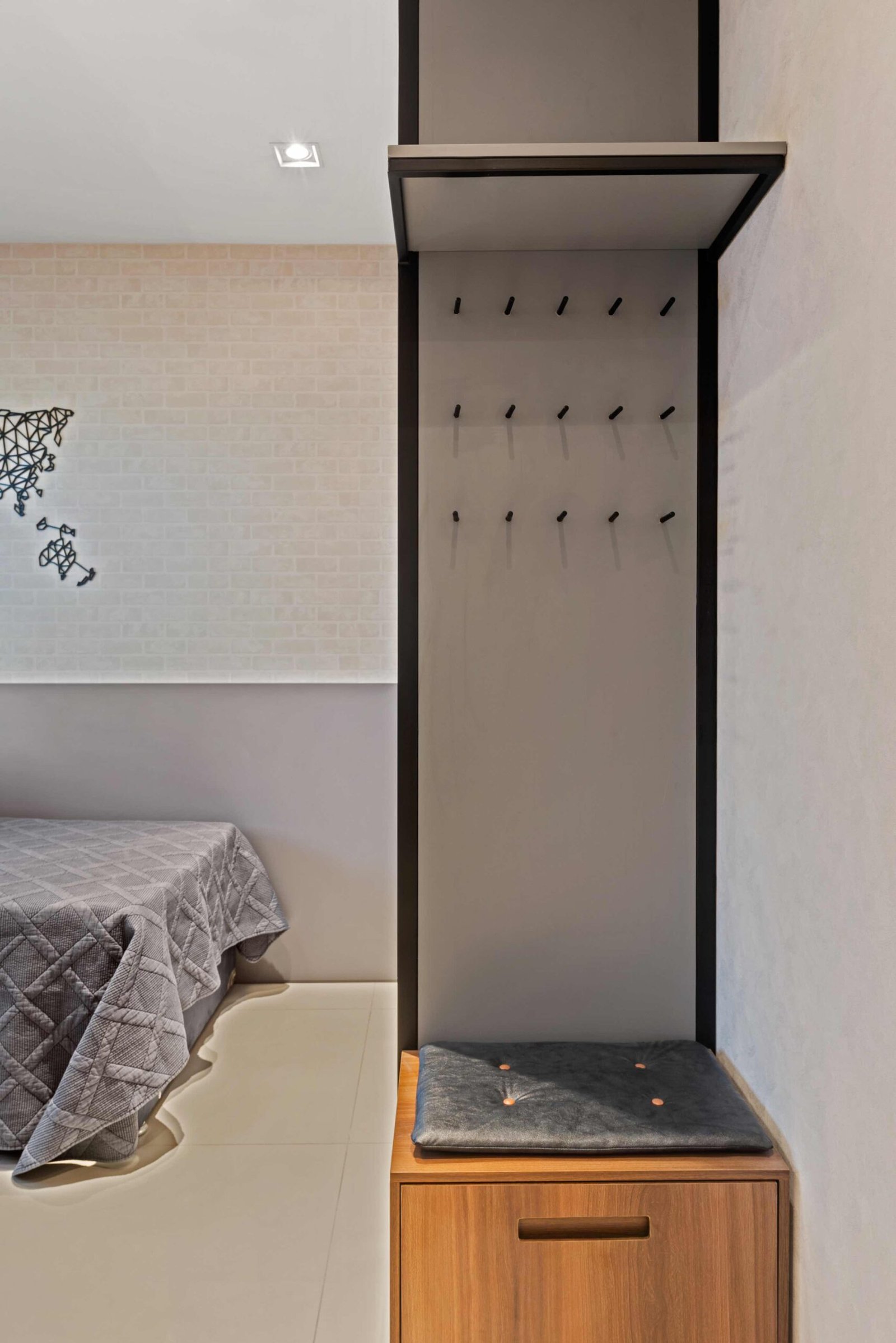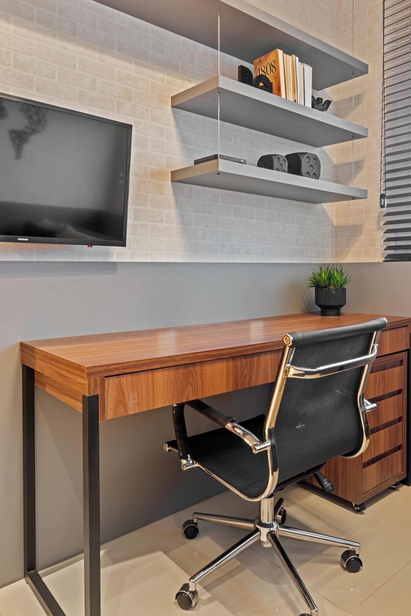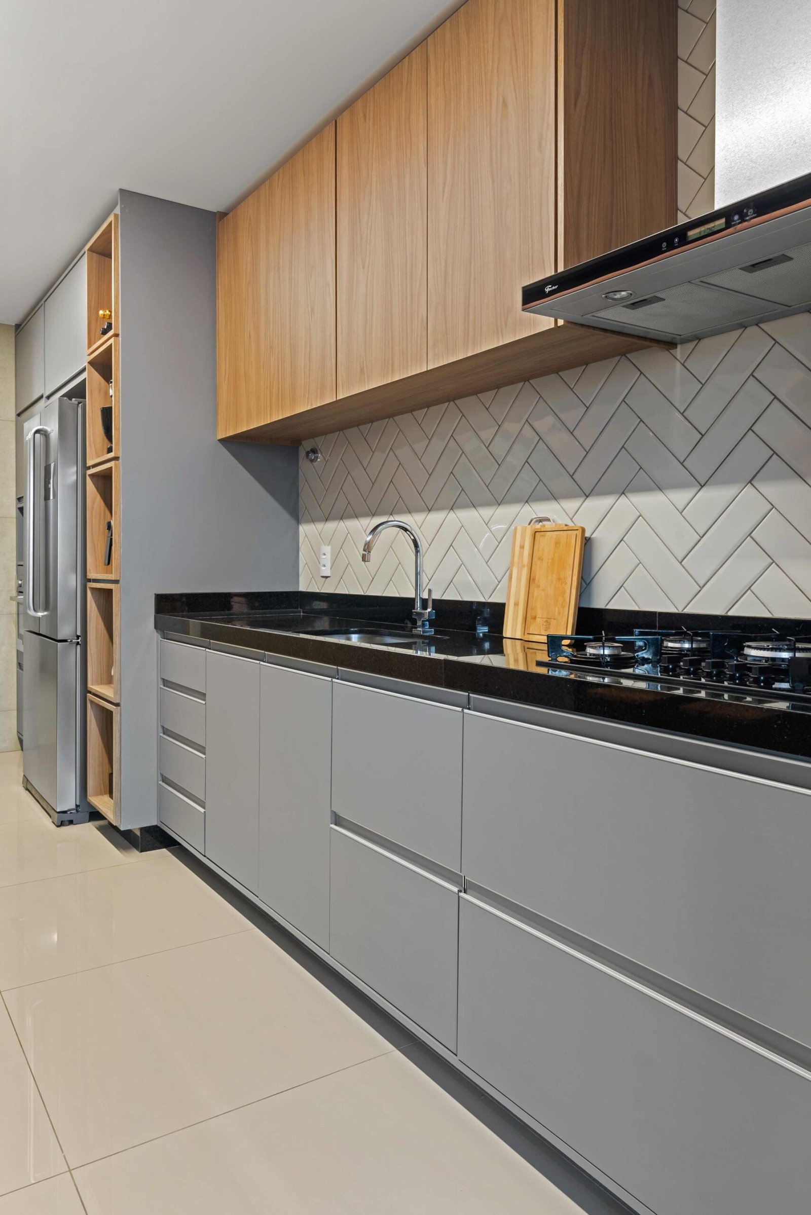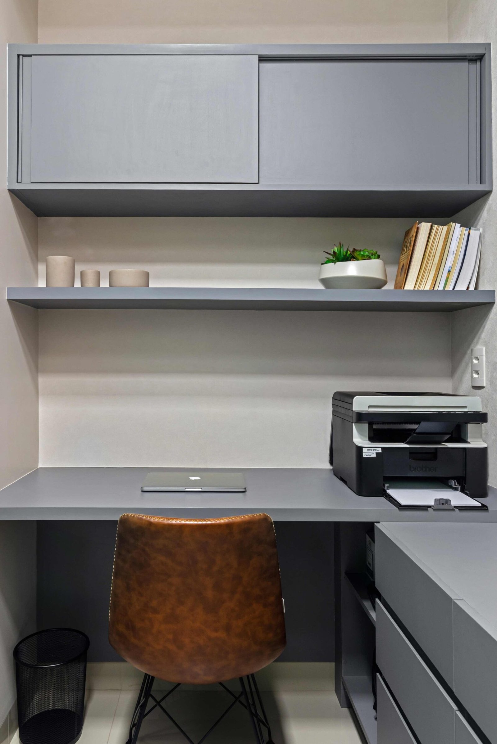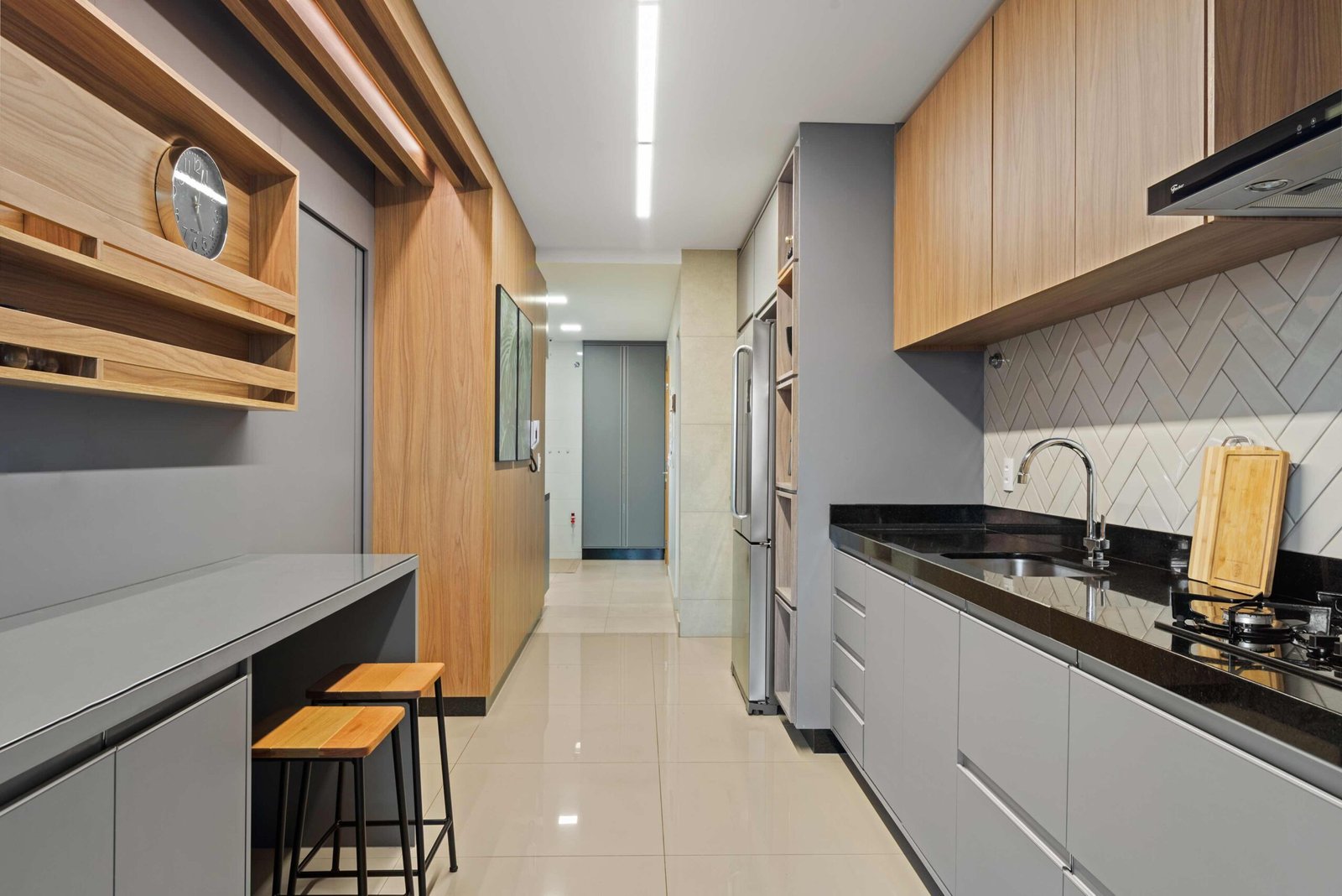 Este projeto foi desenvolvido para um apartamento em Cuiabá-MT. Sendo uma das cidades mais quentes do Brasil, a premissa do projeto foi que ele transmitisse frescor e personalidade. Usando da cor no lugar de painéis de madeira (que passam a sensação de mais calor) criamos a atmosfera desejada pelos clientes.