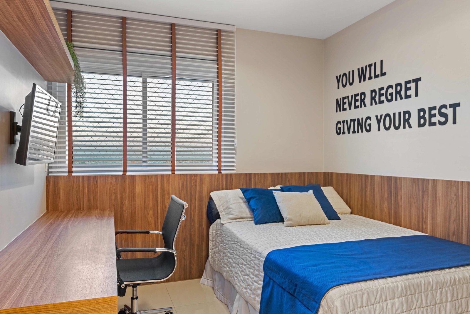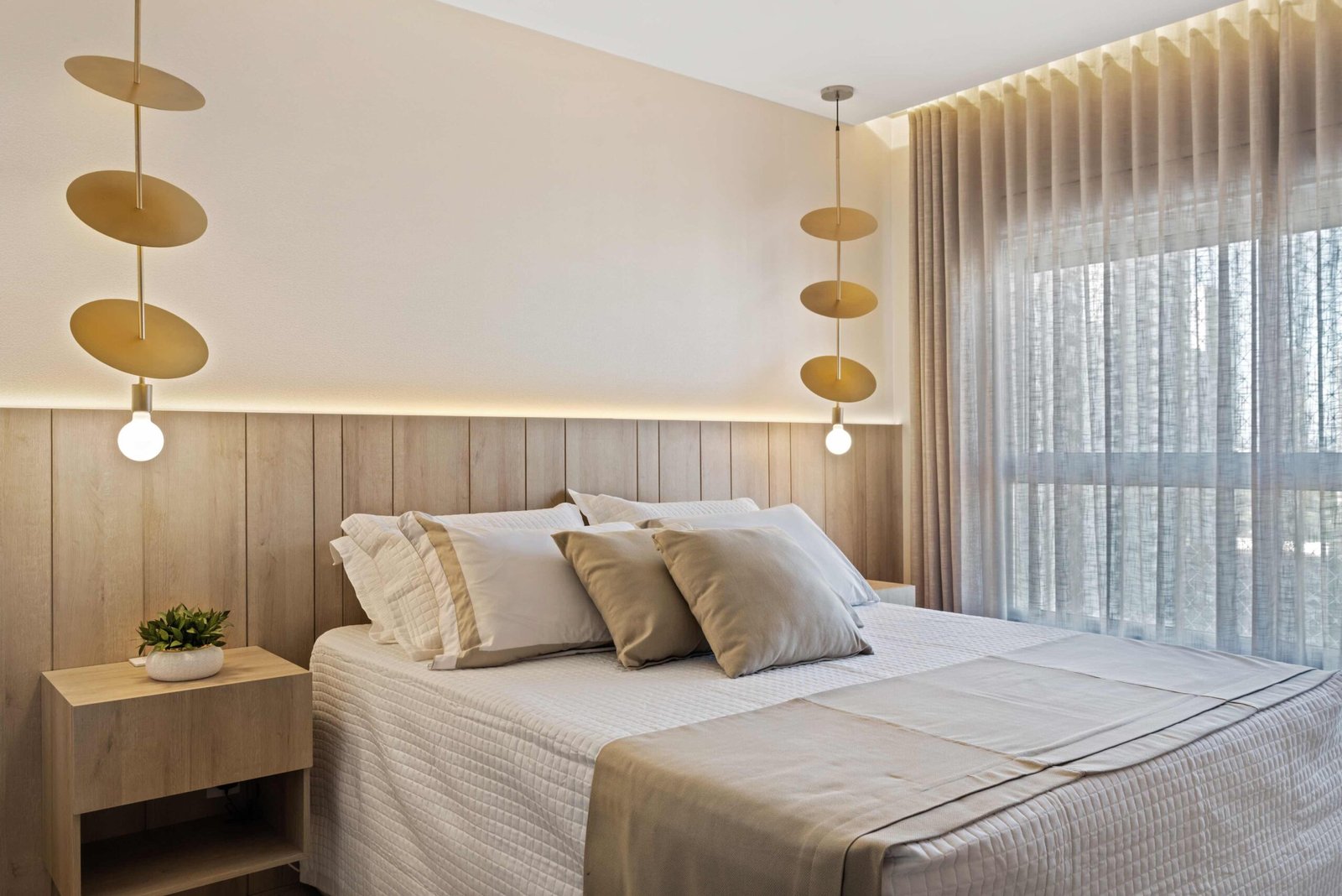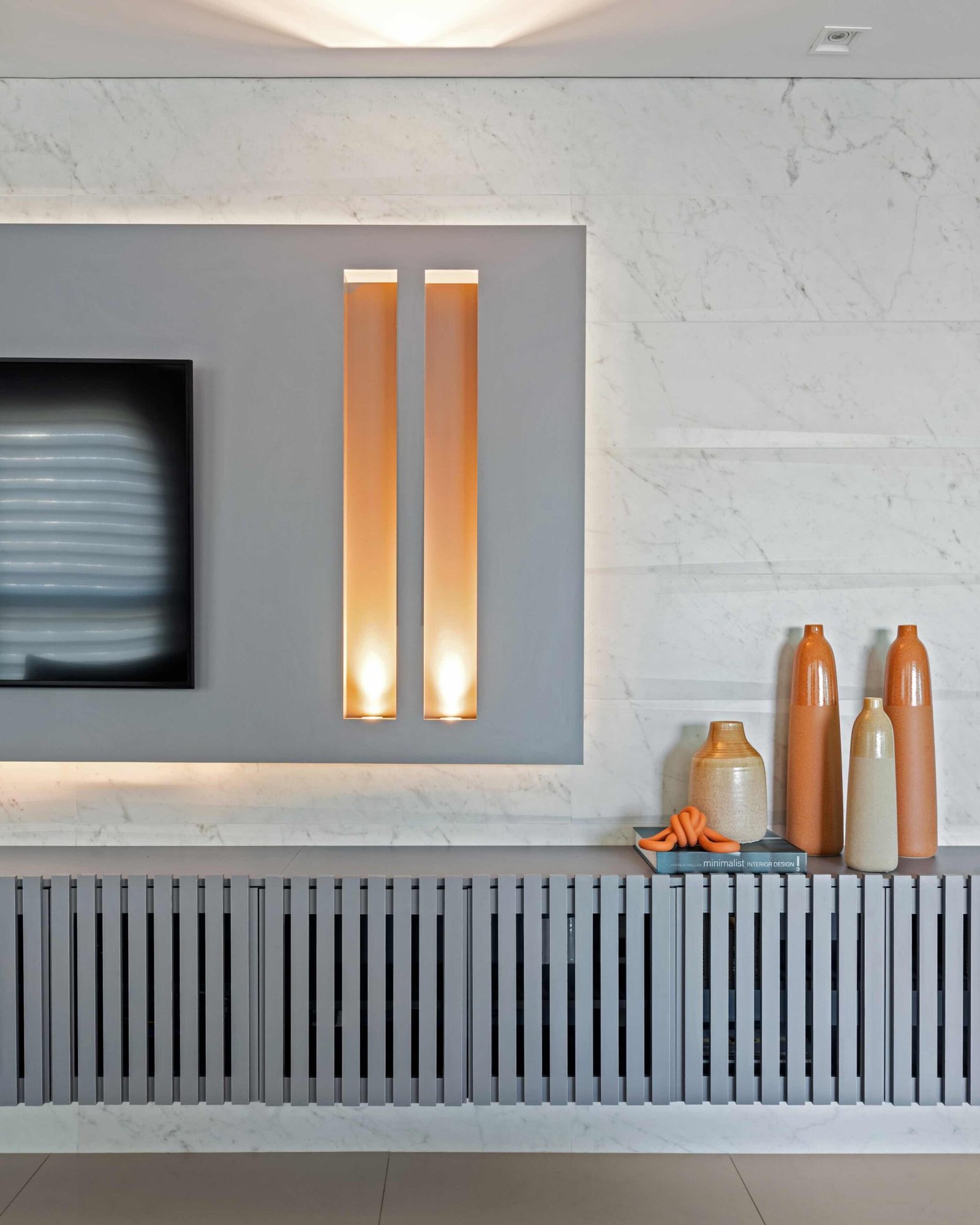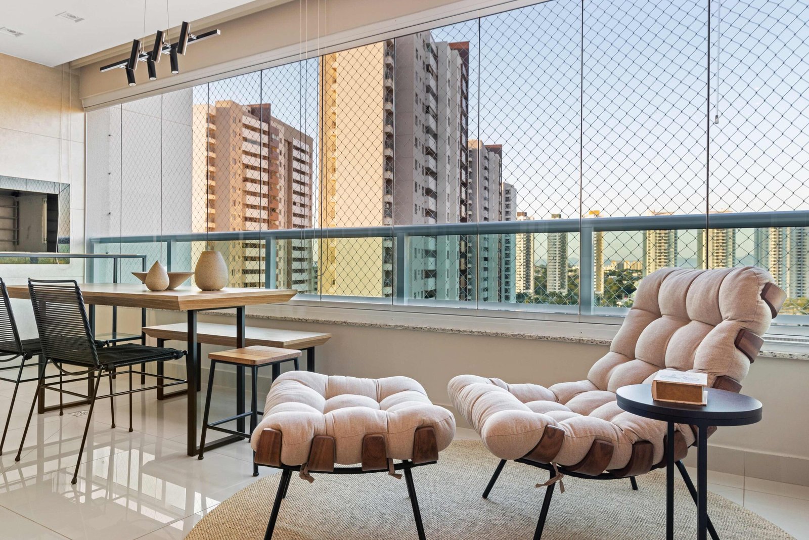 Este projeto foi desenvolvido para um apartamento em Cuiabá-MT. Sendo uma das cidades mais quentes do Brasil, a premissa do projeto foi que ele transmitisse frescor e personalidade. Usando da cor no lugar de painéis de madeira (que passam a sensação de mais calor) criamos a atmosfera desejada pelos clientes.