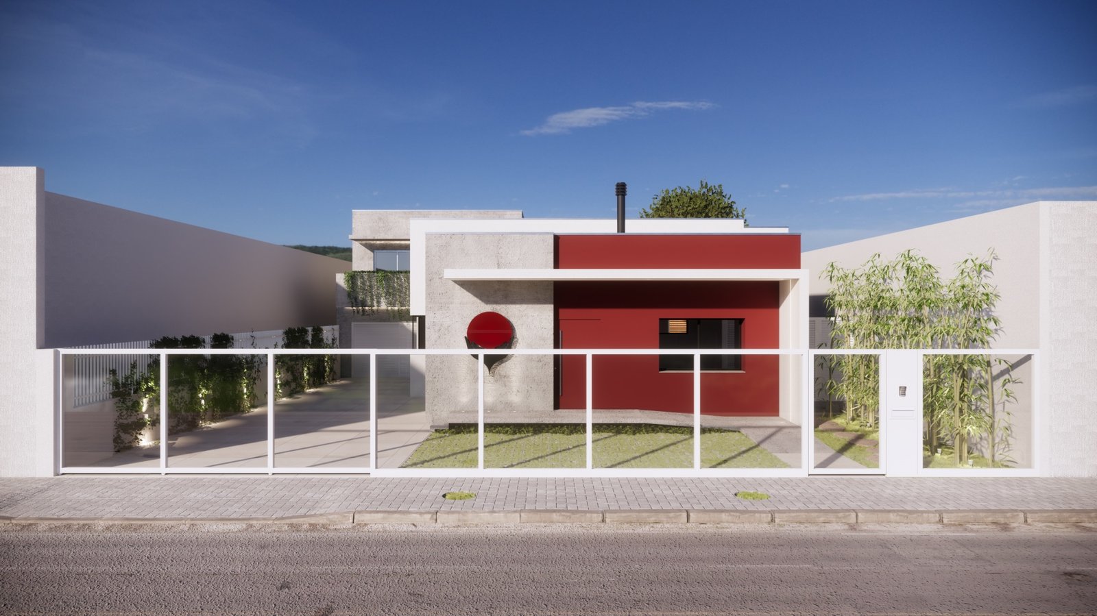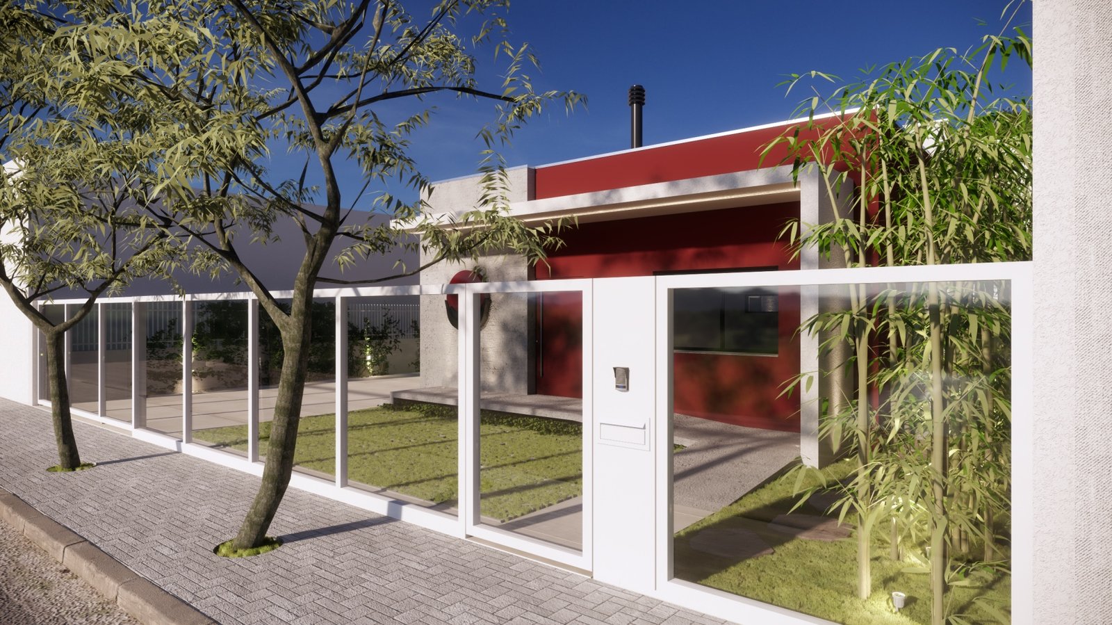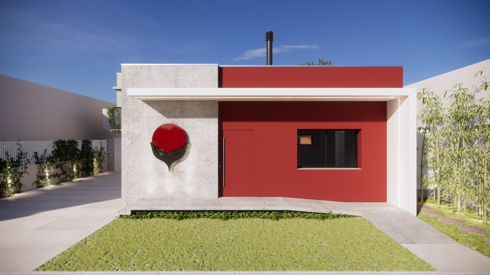 Este projeto foi a reforma de uma casa para transformá-la em uma clínica de terapias orientais. Com muitos vínculos no Japão, os clientes pediram que a fachada remetesse tanto a marca deles como a cultura japonesa. Assim trouxemos as cores fortes e as linhas retas e minimalistas da arquitetura nipônica.