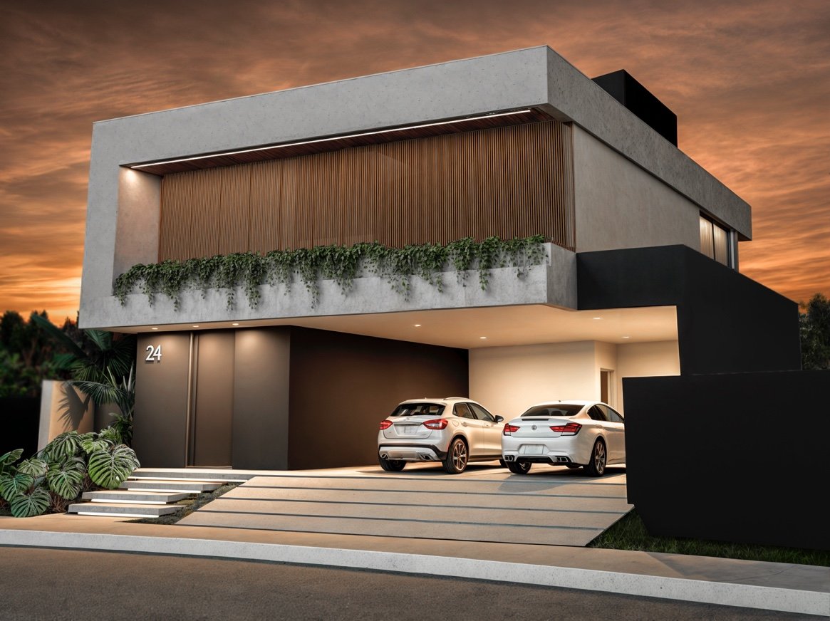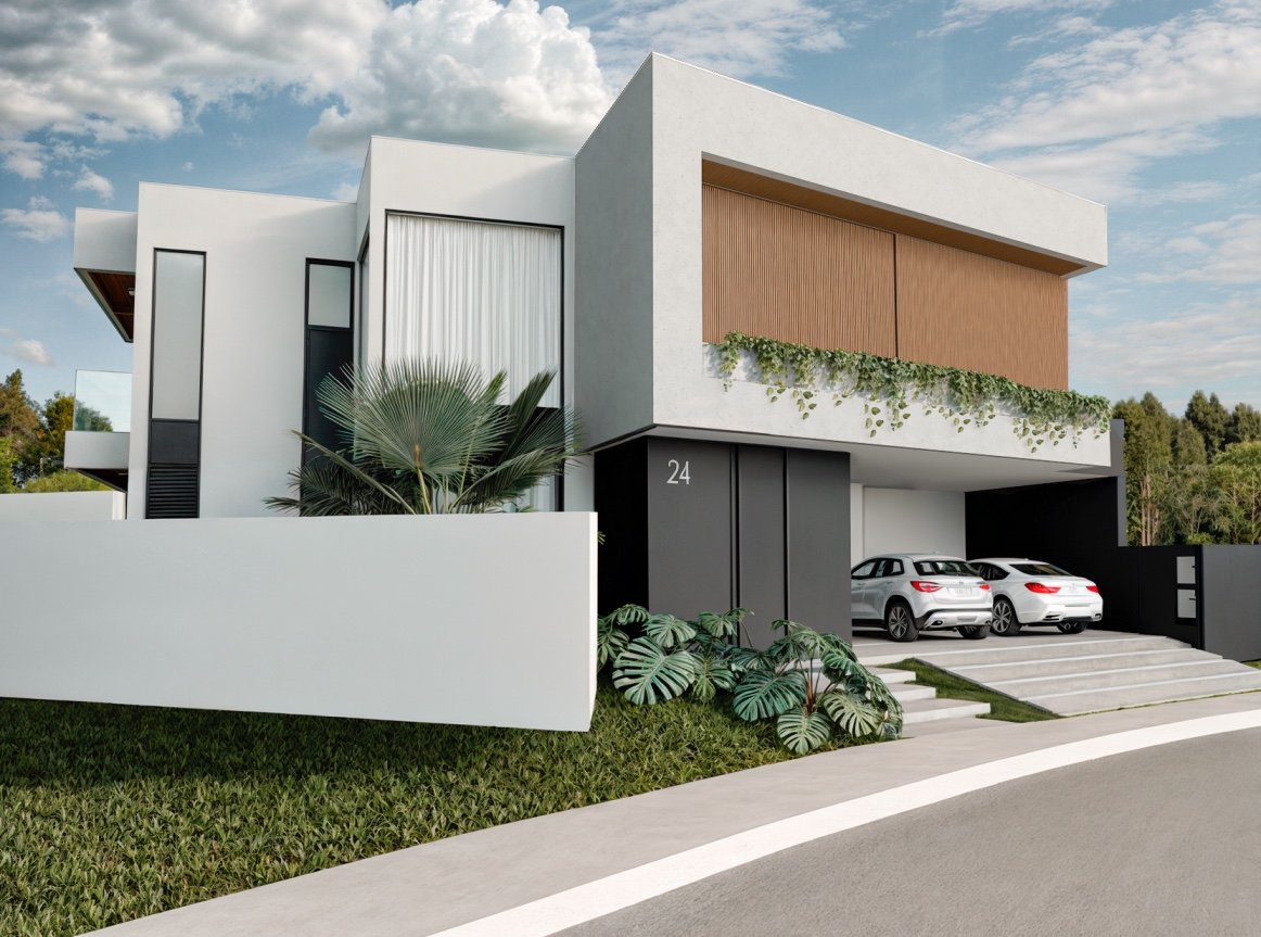 Residência MFG Este projeto arquitetônico foi feito para uma família que pediu um lar moderno e imponente. Com linhas retas e cores sóbrias, a casa traduz a personalidade dos moradores.